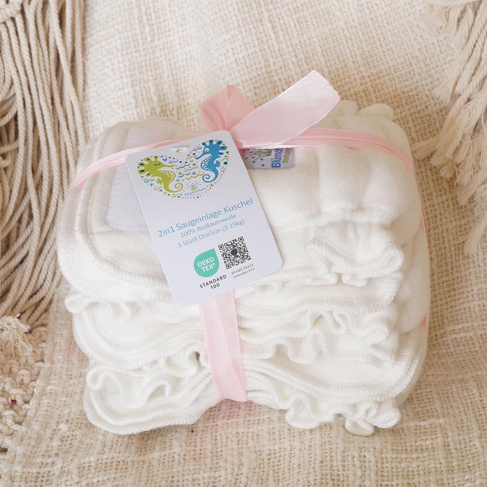 NEW: Blümchen 2in1 SLIMFIT insert with velcro fastening. We reduced the crotch width and the layering, to make it fit slimmer and softer for smaller babys.